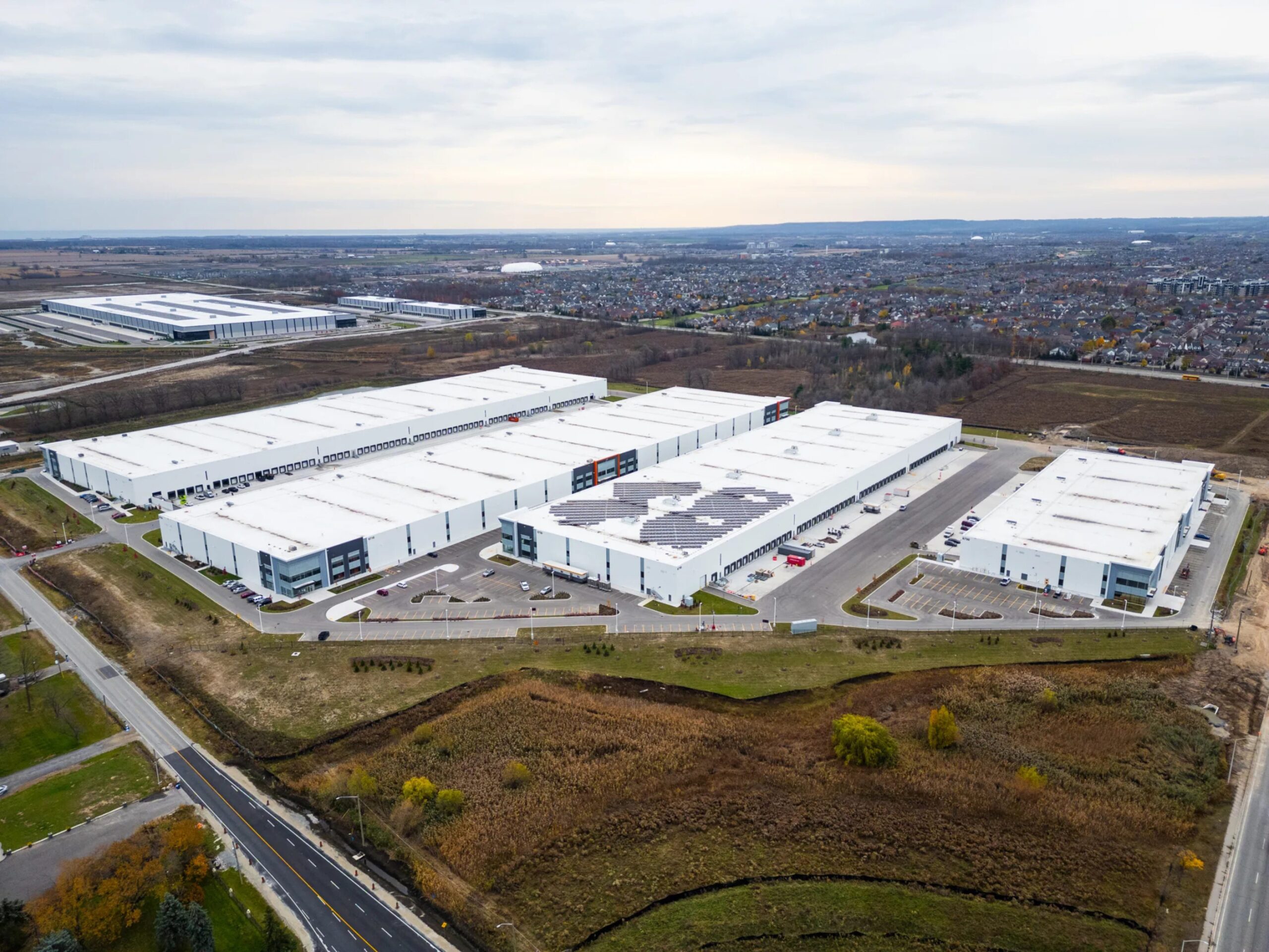 Empire delivered the high-performance roof envelope for Derry Green Industrial Park—a four-building, ~970,000-sq-ft, Class A logistics campus in Milton, Ontario. Partnering closely with General Contractor Broccolini, our commercial/industrial roofing team installed an Elevate™ TPO flat industrial roofing system engineered for durability and sustainability. Across the park’s Net-Zero-ready design—including a fully Electric Net-Zero facility powered by rooftop solar—we integrated high-R insulation, tapered drainage, solar-ready detailing, and robust curb/penetration flashings. Multi-crew phasing kept the schedule on track while delivering watertight, energy-efficient roofs that support fast-moving logistics operations across the GTA.