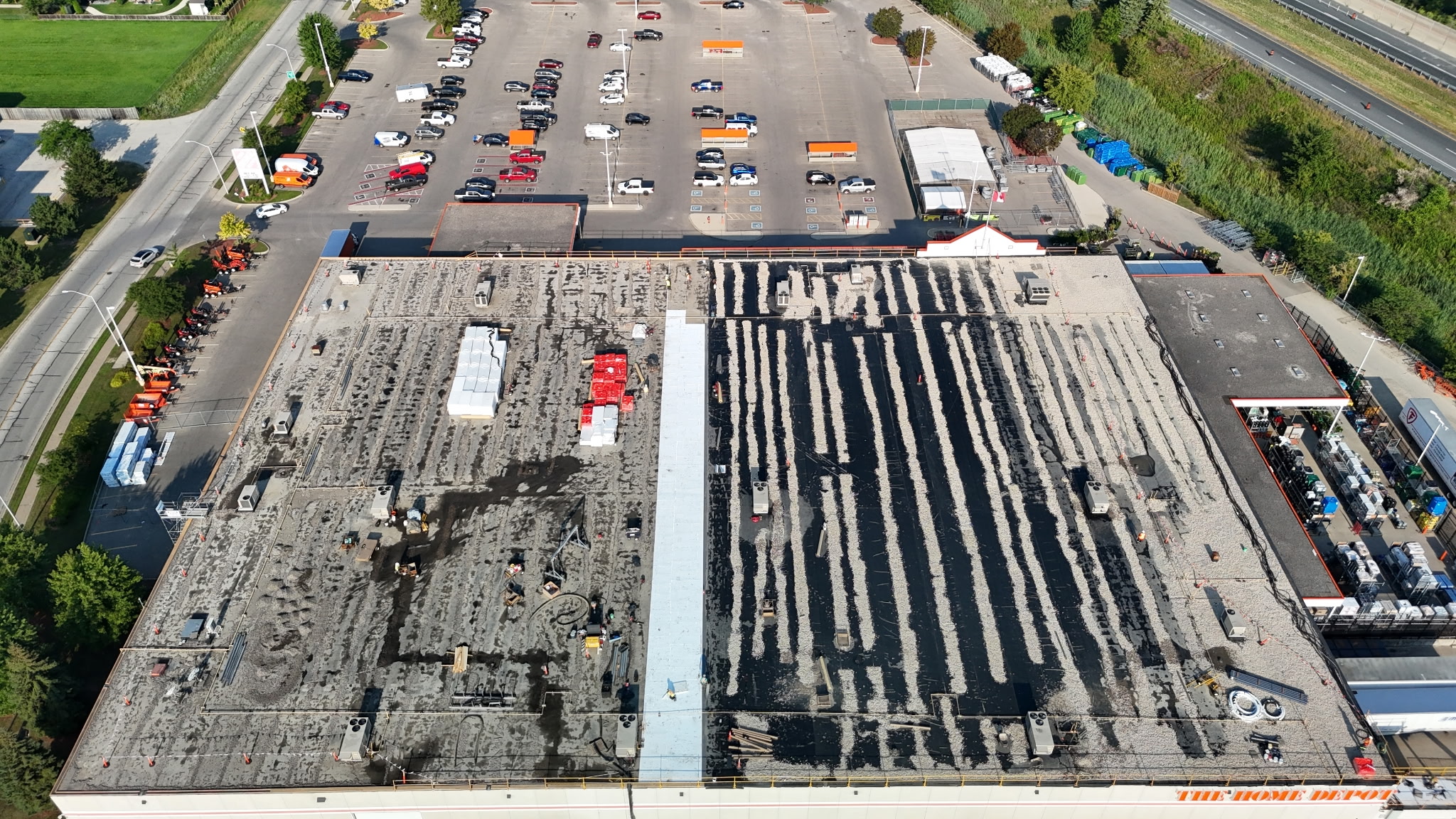 Empire Roofing completed a 105,000 sq.ft. roof renewal project for a Home Depot location in Sarnia, Ontario, delivering a high-performance EPDM roofing system built for long-term durability and reliable watertight protection.