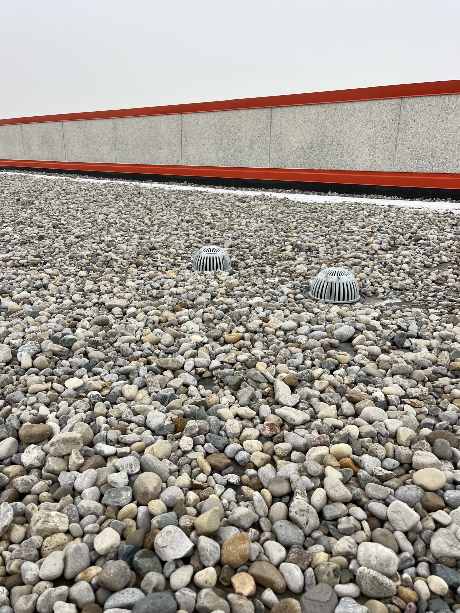 The project featured a 60-mil reinforced Elevate RubberGard MAX ballasted EPDM membrane installed over a steel deck with added insulation, creating a roofing assembly designed to support long-term building performance. The scope also included detailed tie-ins, flashing, drainage integration, and perimeter conditions to ensure a complete and dependable system.