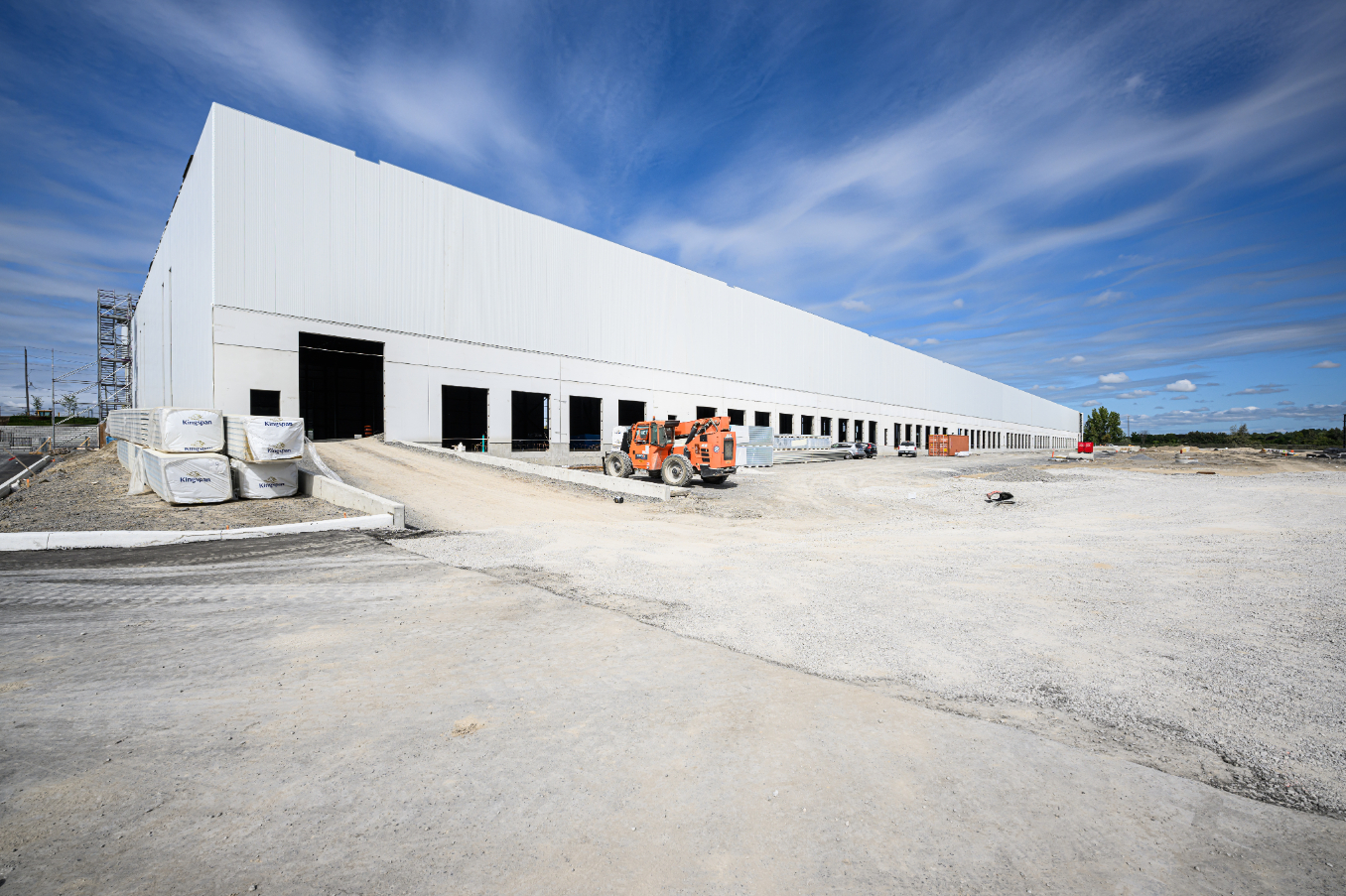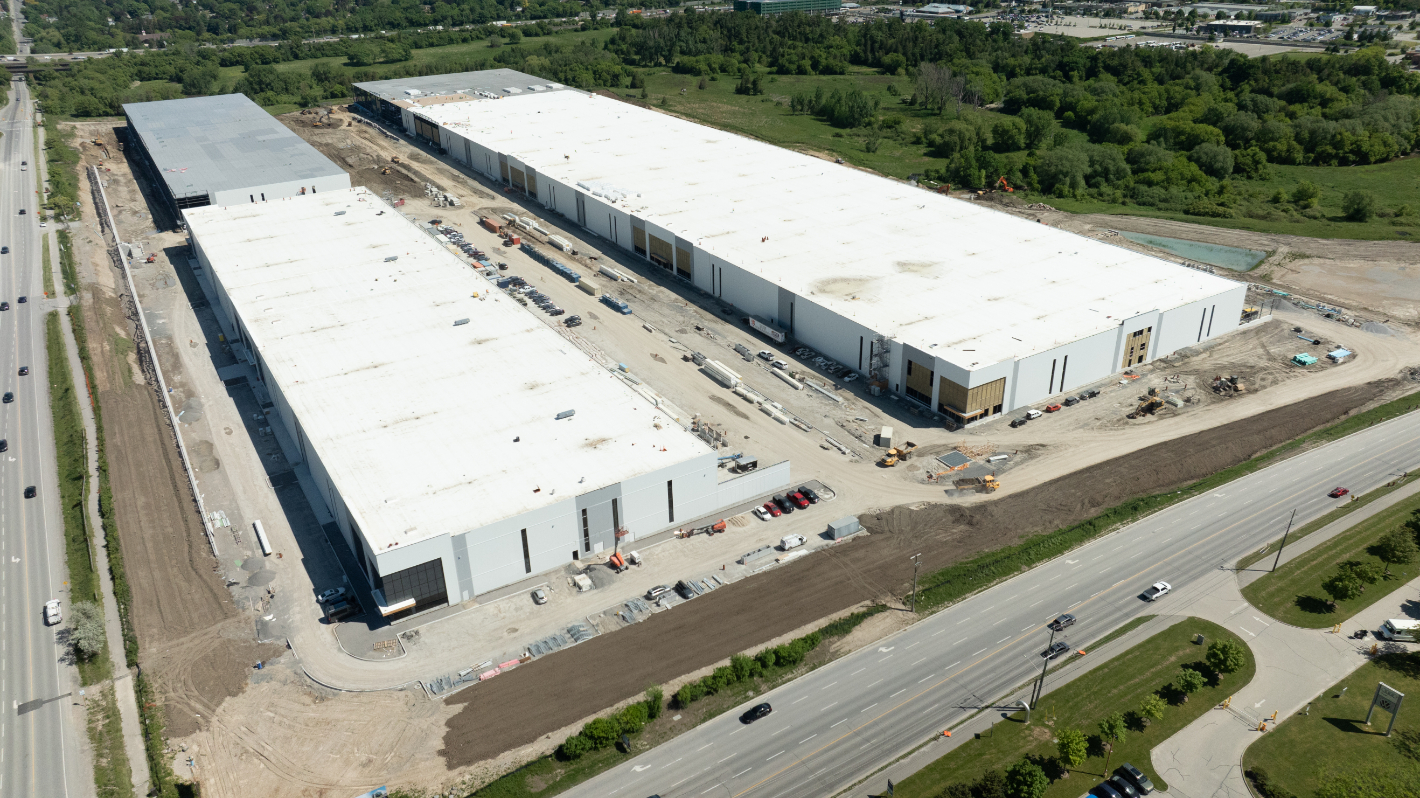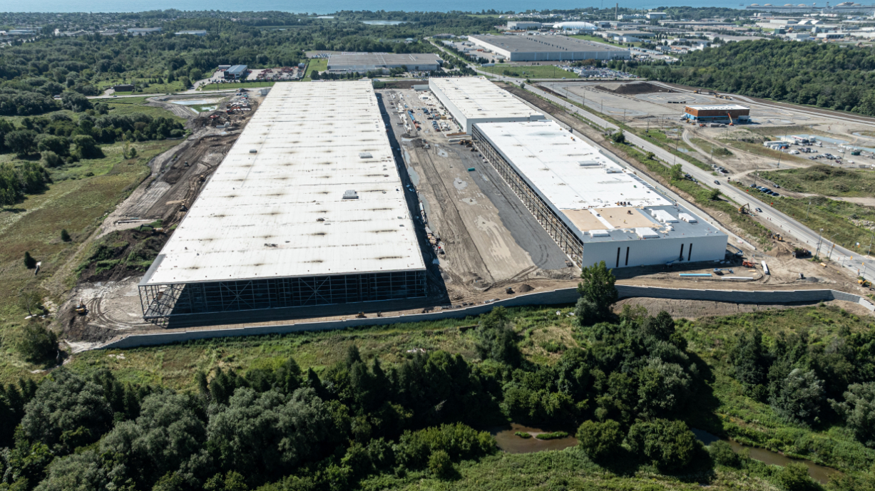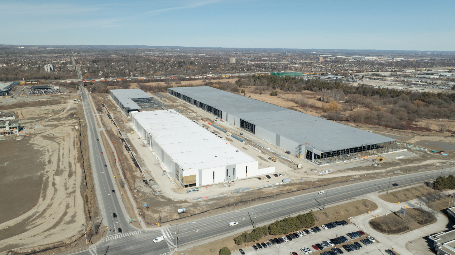 Empire delivered the flat industrial roofing package for Church Street South—a three-building, ~1.1-million-sq-ft Class A logistics development with 42-ft clear heights. Partnering with General Contractor Torque, we installed an IKO InnoviTPO 60-mil mechanically attached TPO roofing system over a 6-mil polyethylene vapour retarder and two layers of 3.5-inch IKOTherm polyiso on 22-ga steel deck. Perimeter half-sheets and enhanced fastening deliver strong wind-uplift performance, while drains, scuppers, curb flashings and TPO walkways were detailed to manufacturer standards. The result is a high-R, durable, low-maintenance roof engineered to meet IKO warranty requirements—an efficient, reliable solution purpose-built for large warehouse and distribution operations.