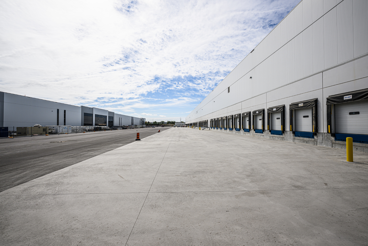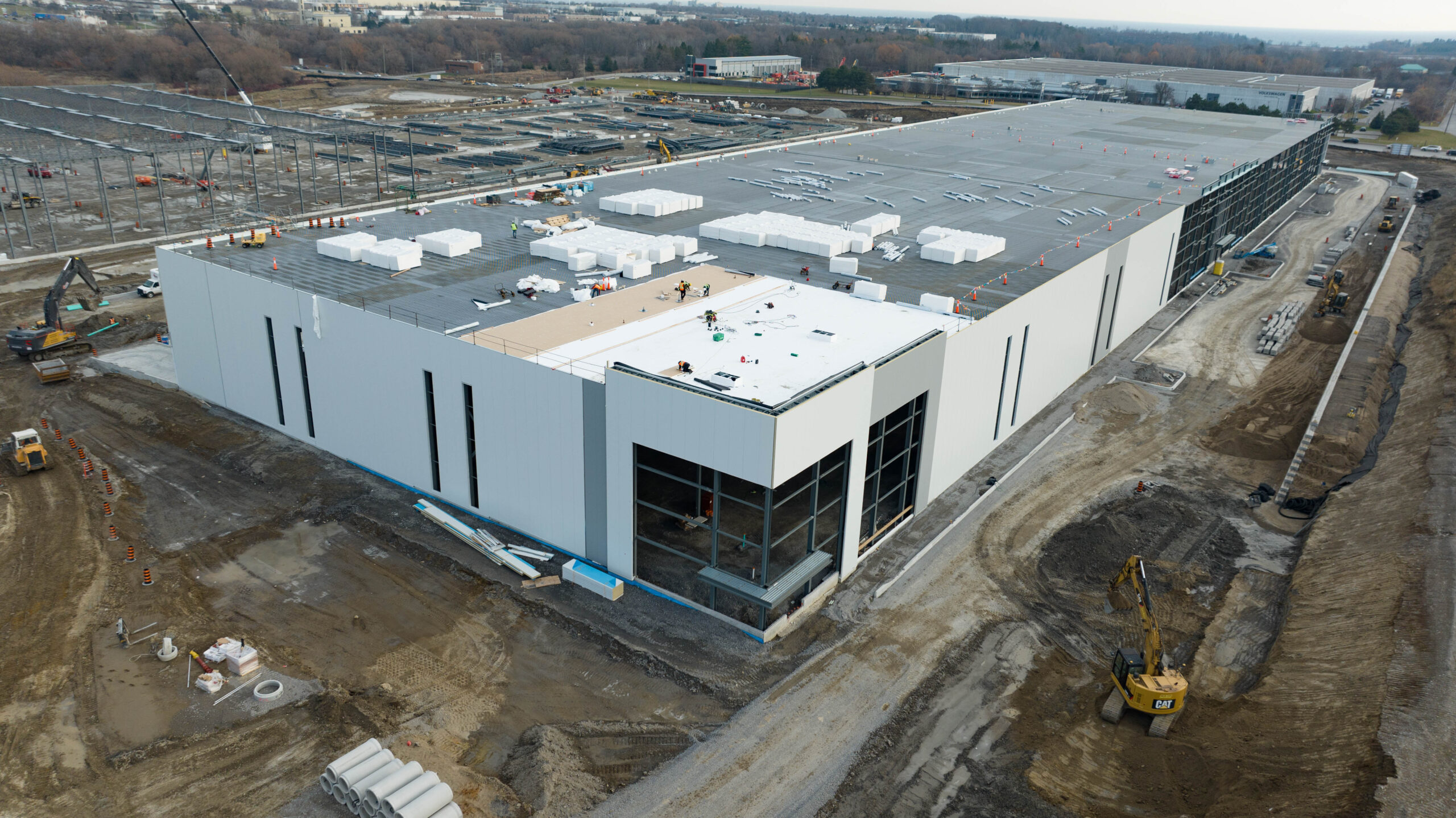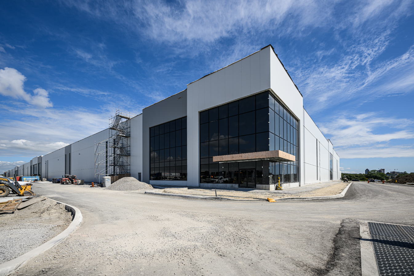 Empire delivered the flat industrial roofing package for Church Street South—a three-building, ~1.1-million-sq-ft Class A logistics development with 42-ft clear heights. Partnering with General Contractor Torque, we installed an IKO InnoviTPO 60-mil mechanically attached TPO roofing system over a 6-mil polyethylene vapour retarder and two layers of 3.5-inch IKOTherm polyiso on 22-ga steel deck. Perimeter half-sheets and enhanced fastening deliver strong wind-uplift performance, while drains, scuppers, curb flashings and TPO walkways were detailed to manufacturer standards. The result is a high-R, durable, low-maintenance roof engineered to meet IKO warranty requirements—an efficient, reliable solution purpose-built for large warehouse and distribution operations.