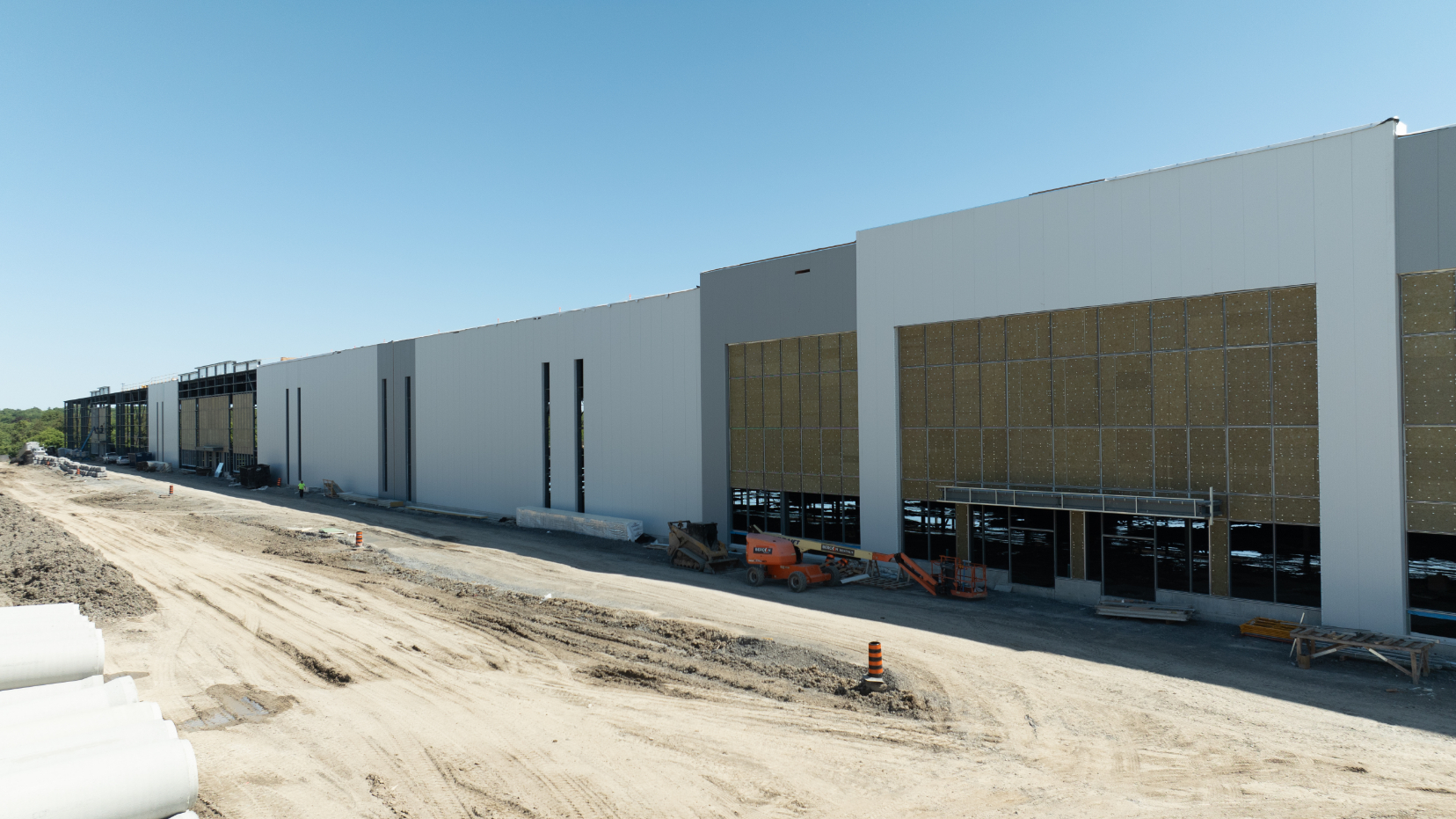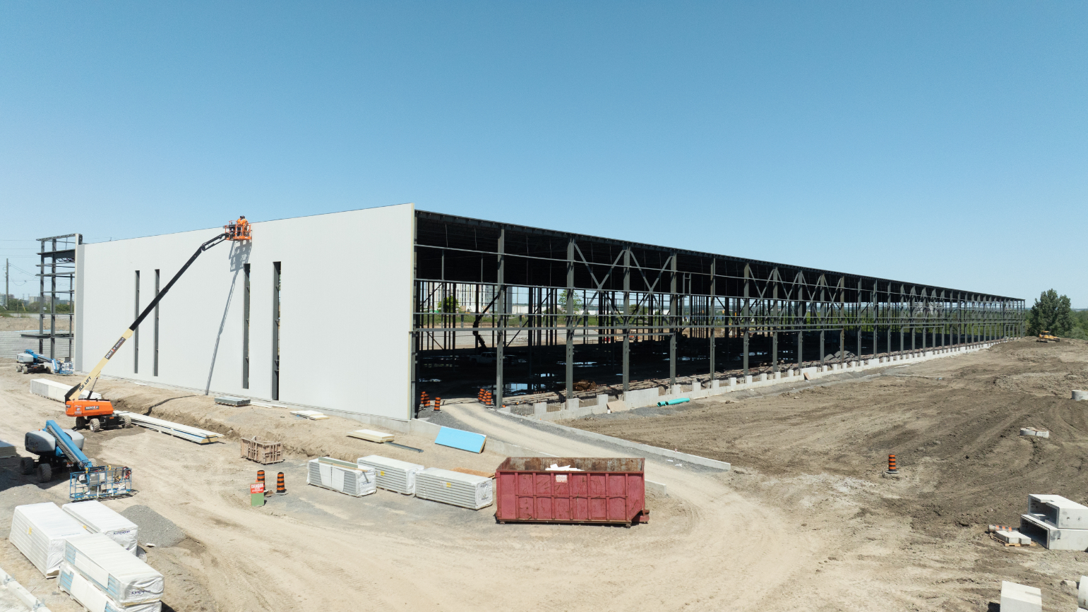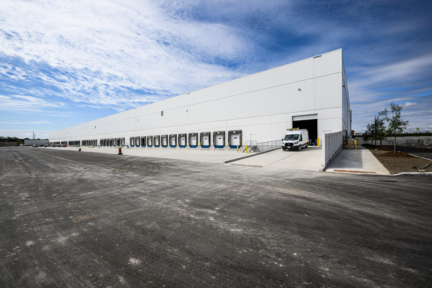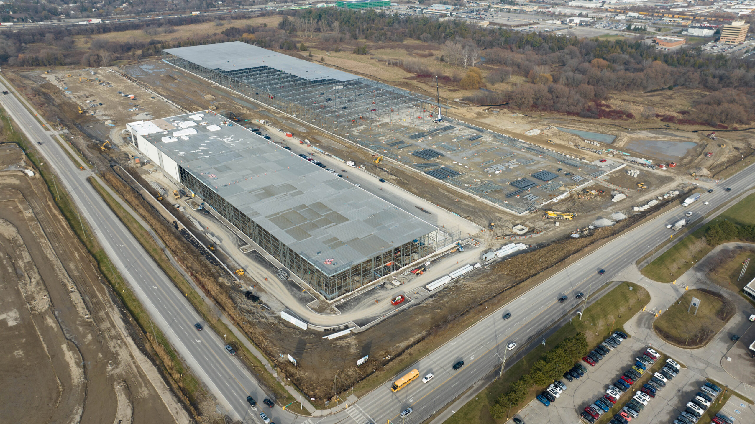 Empire delivered the flat industrial roofing package for Church Street South—a three-building, ~1.1-million-sq-ft Class A logistics development with 42-ft clear heights. Partnering with General Contractor Torque, we installed an IKO InnoviTPO 60-mil mechanically attached TPO roofing system over a 6-mil polyethylene vapour retarder and two layers of 3.5-inch IKOTherm polyiso on 22-ga steel deck. Perimeter half-sheets and enhanced fastening deliver strong wind-uplift performance, while drains, scuppers, curb flashings and TPO walkways were detailed to manufacturer standards. The result is a high-R, durable, low-maintenance roof engineered to meet IKO warranty requirements—an efficient, reliable solution purpose-built for large warehouse and distribution operations.